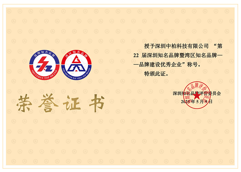 深圳市暨灣區(qū)品牌建設(shè)優(yōu)秀企業(yè)榮譽(yù)證書(shū)