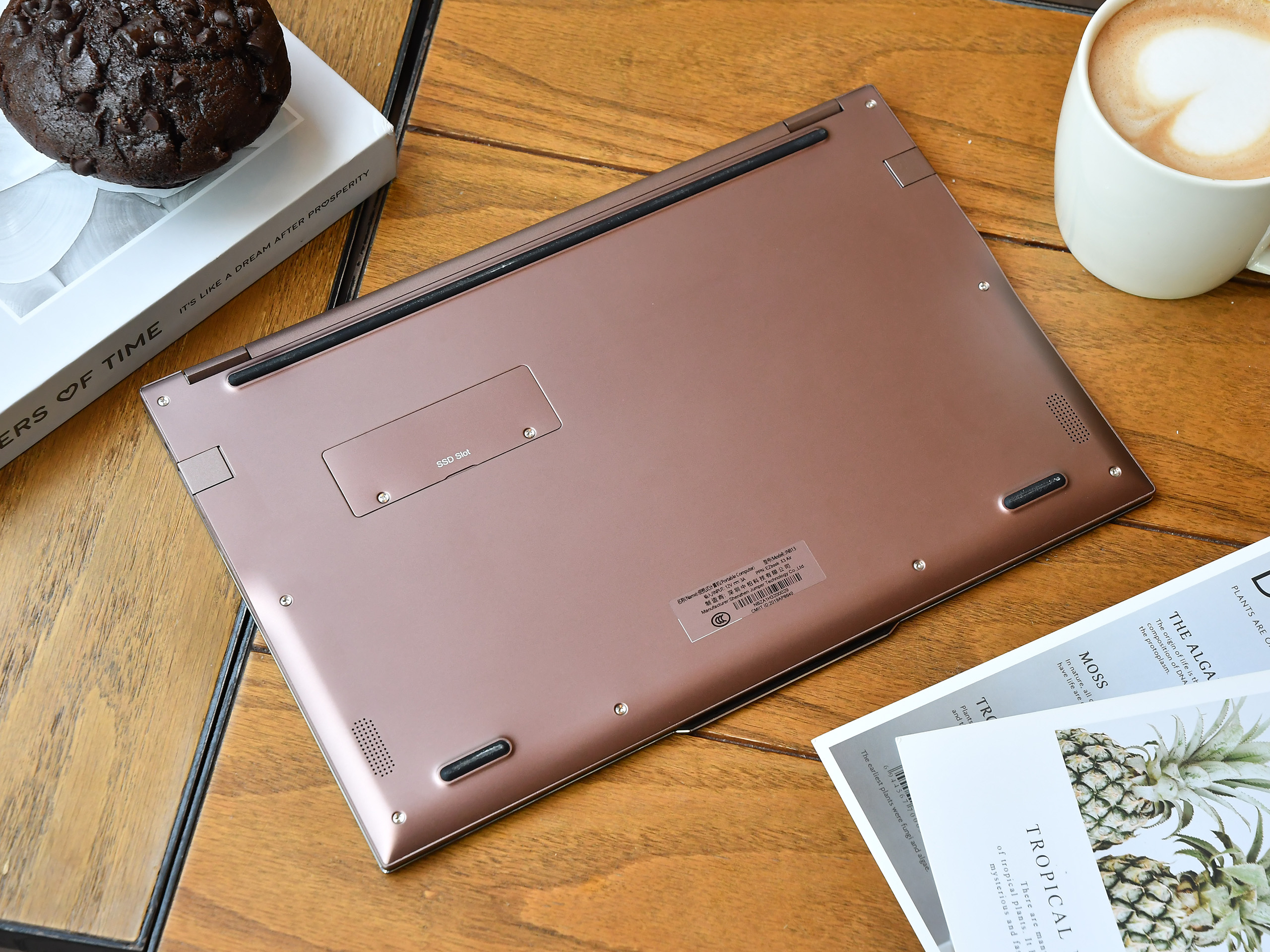 中柏EZbook X3 Air由全金屬機身打造,機身表面觸感細膩,B\C面及觸控板四周均加入了倒角亮邊,看起來更為精致。中柏EZbook X3 Air采用了摩卡棕配色,相比常見的銀色和黑色,棕色更能突顯筆記本的品質感。